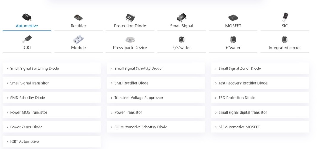 제품 라인업은 분리소자 칩, MOSFET, IGBT & 파워 모듈, SiC, 정류 소자, 보호 소자, 소신호 소자 등을 포함하며, 고객에게 종합적인 제품 솔루션을 제공합니다.